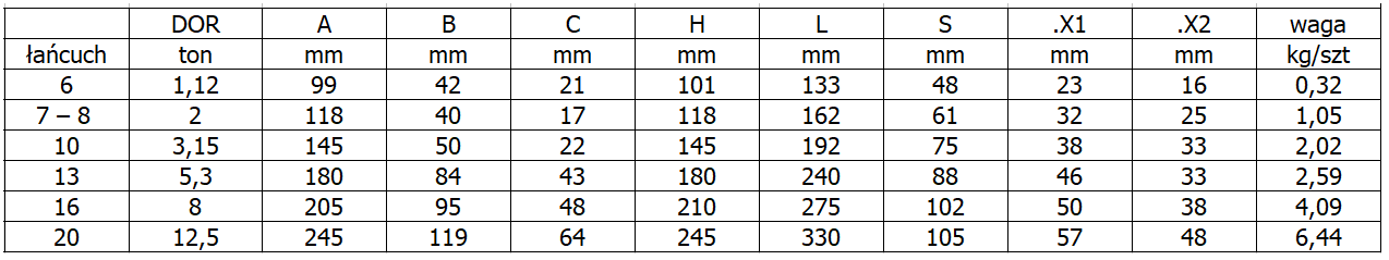 | Zastosowanie | do zawiesi łańcuchowych i linowych |