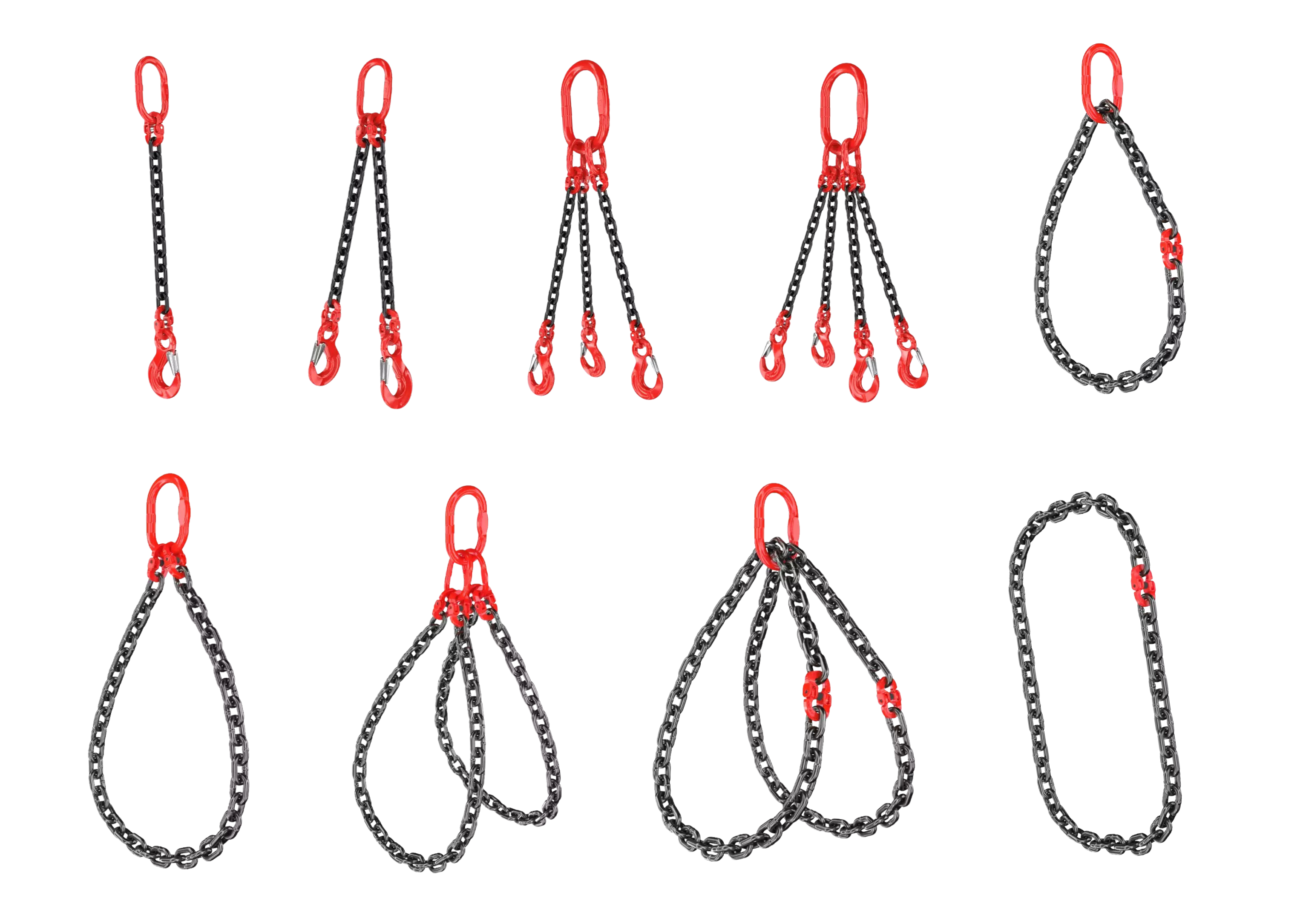 Łańcuchy tej klasy mogą być stosowane zarówno w jedno-, jak i wielocięgnowych systemach zawiesi, umożliwiając podnoszenie ładunków o różnych kształtach i rozmiarach. Są kompatybilne z różnymi akcesoriami, takimi jak haki, ogniwa główne, szekle czy zaciski, co czyni je wszechstronnym rozwiązaniem dla różnych branż. -