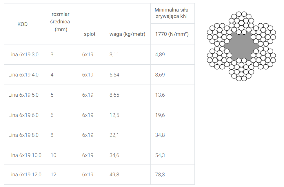 | Rodzaj splotu | 6x19 |