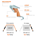 Solidny i niezawodny napinacz do pasa transportowego o szerokości 25 mm i maksymalnej wytrzymałości 0,8 tony (800 kg). Część krótka o długości 0,5 metra, wyposażona w wysokiej jakości zapadkę napinającą wykonaną ze stali ocynkowanej, odpornej na korozję i uszkodzenia mechaniczne.
