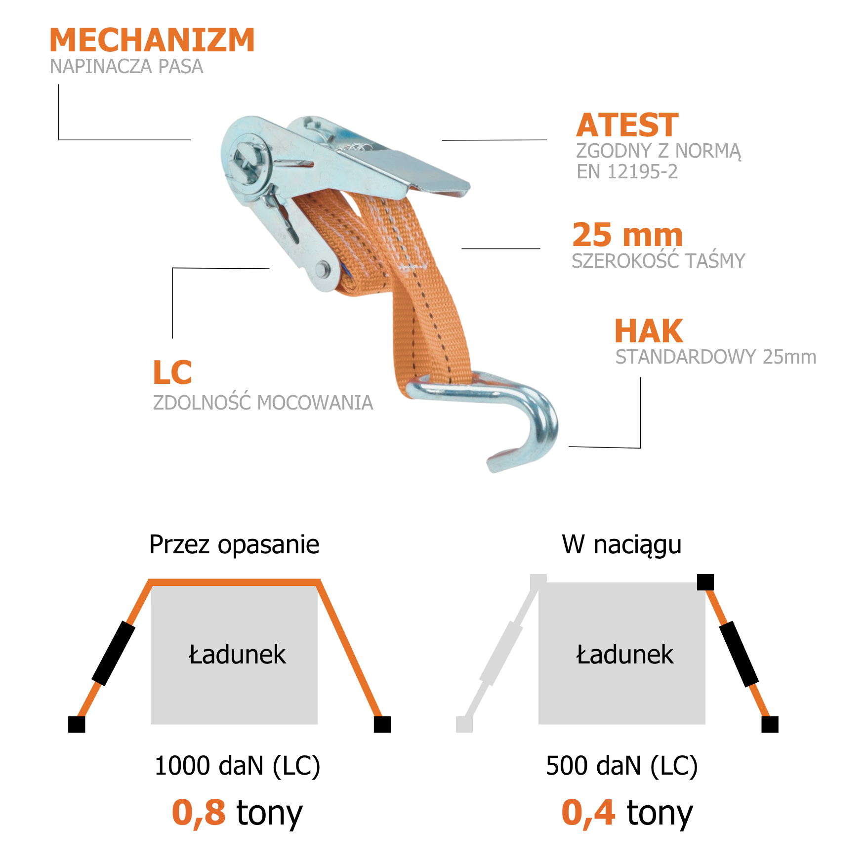 Udźwig roboczy (LC): 800 daN (0,8 tony)