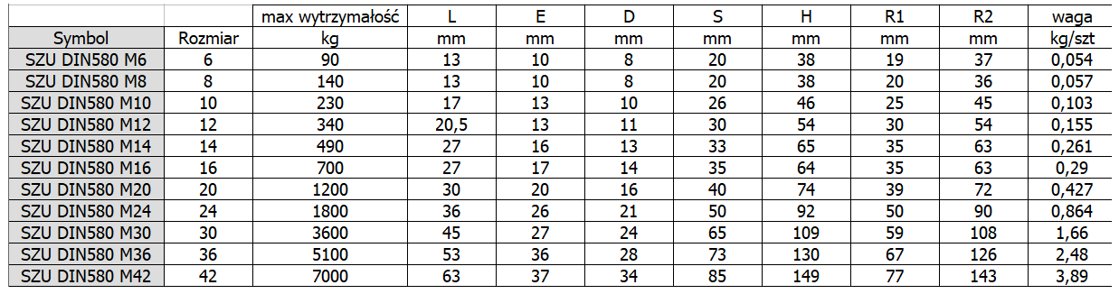 Śruba z uchem DIN 580 to wysokiej jakości element złączny, który jest powszechnie stosowany w różnych branżach do podnoszenia i mocowania ciężkich ładunków. Zaprojektowana zgodnie z normą DIN 580, śruba ta charakteryzuje się solidną konstrukcją i precyzyjnym wykonaniem, co gwarantuje bezpieczeństwo oraz niezawodność w najbardziej wymagających aplikacjach.