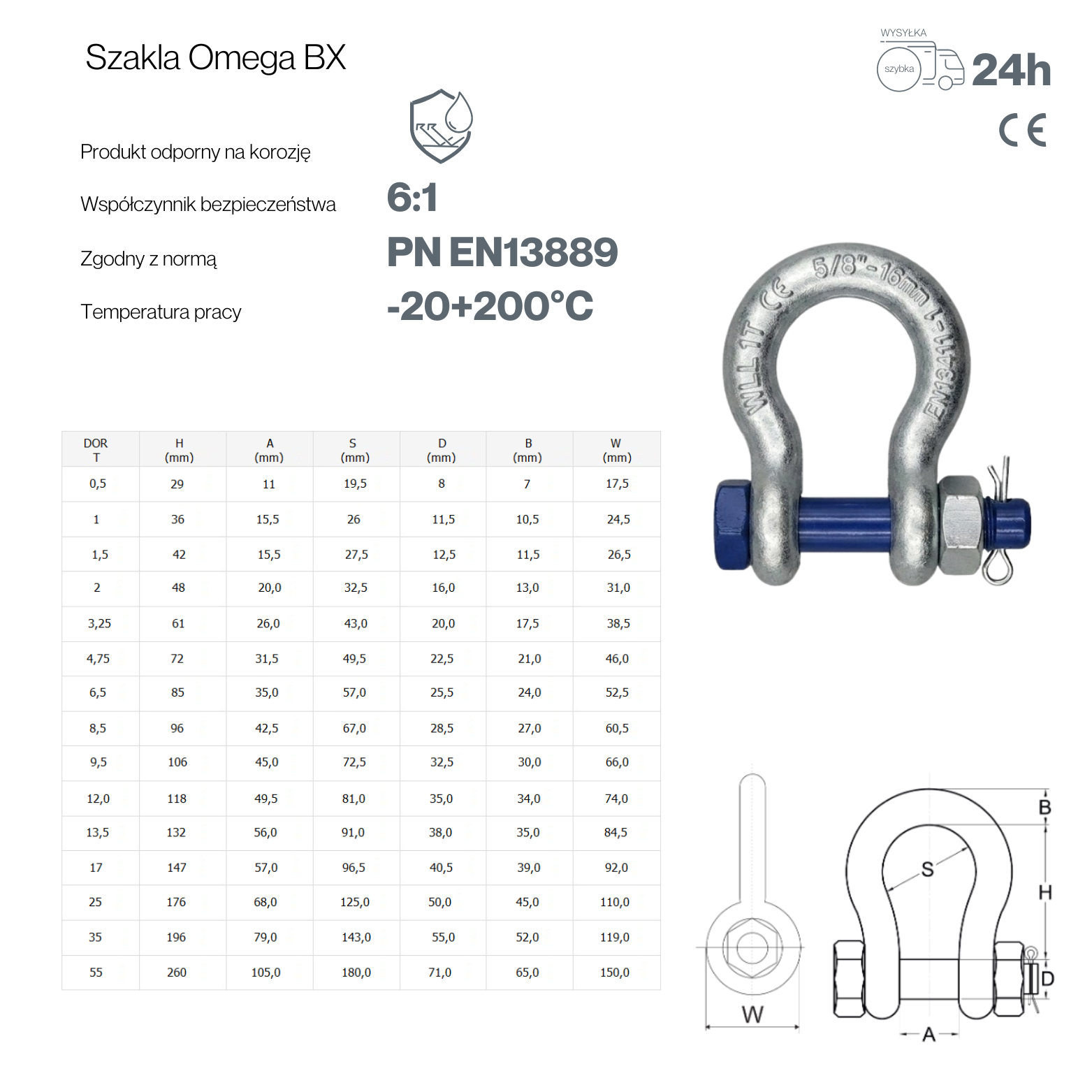 Szakla ze sworzniem z nakrętką, wykonana zgodnie z normą PN-EN 13889, to niezawodne i wszechstronne narzędzie do podnoszenia i przenoszenia ciężkich ładunków. Dzięki wysokiej odporności na korozję, wytrzymałej konstrukcji i łatwości użytkowania, jest idealna do zastosowań w trudnych warunkach przemysłowych oraz w środowiskach narażonych na działanie czynników zewnętrznych. Wysoki współczynnik bezpieczeństwa gwarantuje, że produkt jest bezpieczny i niezawodny nawet w najbardziej wymagających zadaniach.