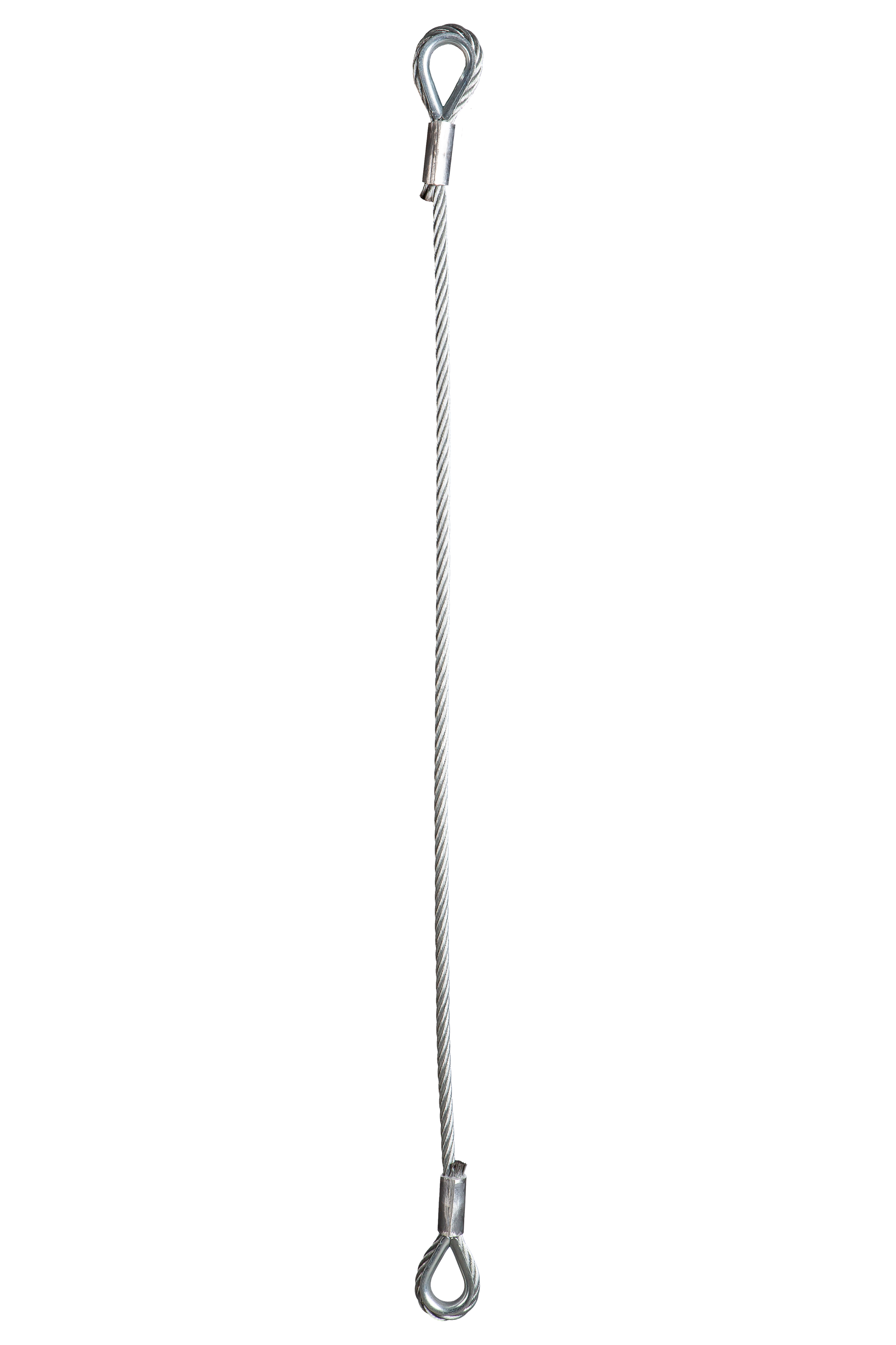 Rodzaj zakończeń: oba końce liny zakończone kauszami stalowymi, co wzmacnia pętle, chroniąc je przed przetarciem i zwiększając trwałość zawiesia.
