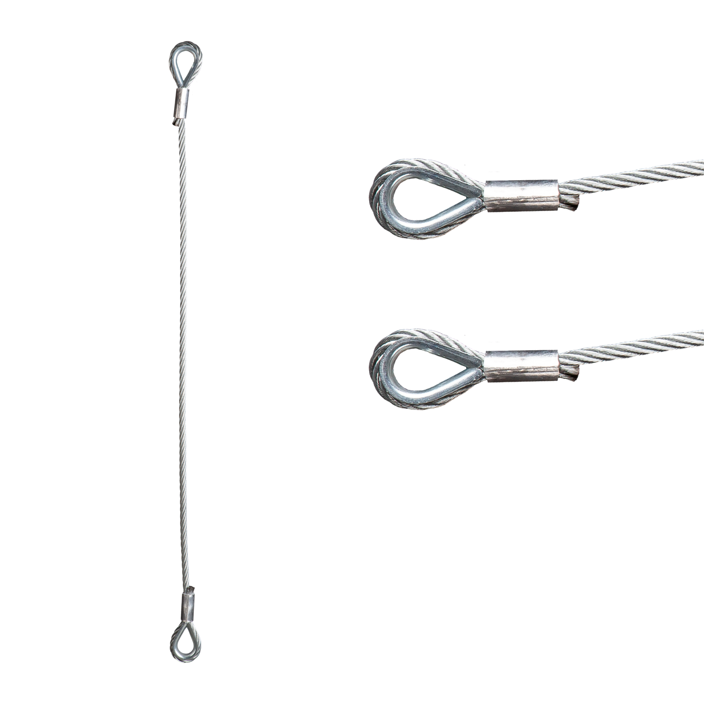 Rodzaj zakończeń: oba końce liny zakończone kauszami stalowymi, co wzmacnia pętle, chroniąc je przed przetarciem i zwiększając trwałość zawiesia.