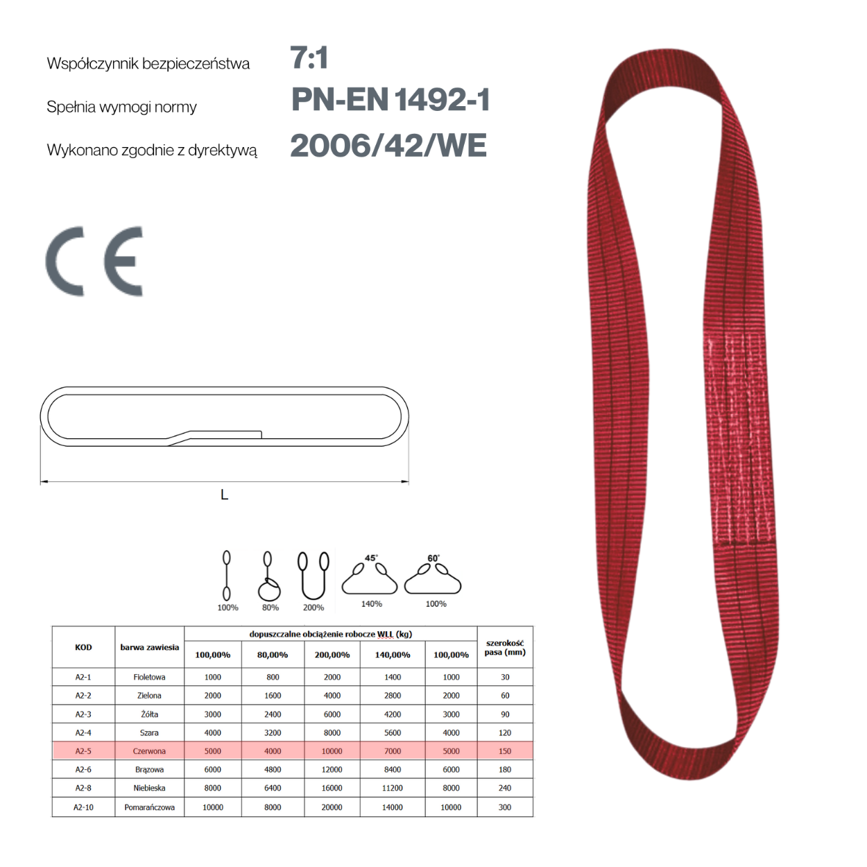 Typ: Zawiesie pasowe bezkońcowe typu A2
